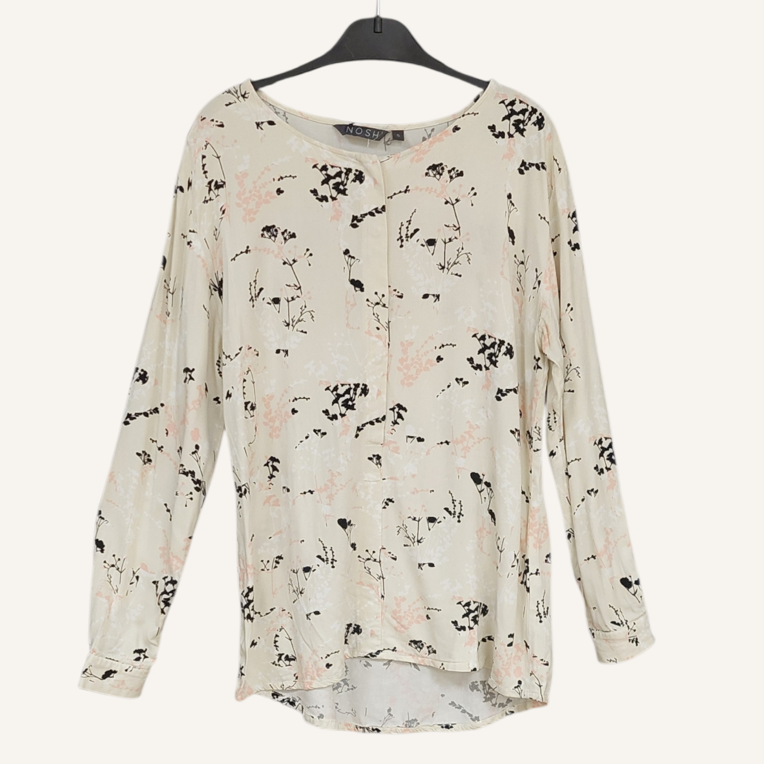 Kevyt, mukavasti laskeutuva paita merkiltä Nosh. Vuoden 2022 mallistosta koko: S materiaali: sertifioitu 100% viskoosi väri: kookos kunto:erinomainen