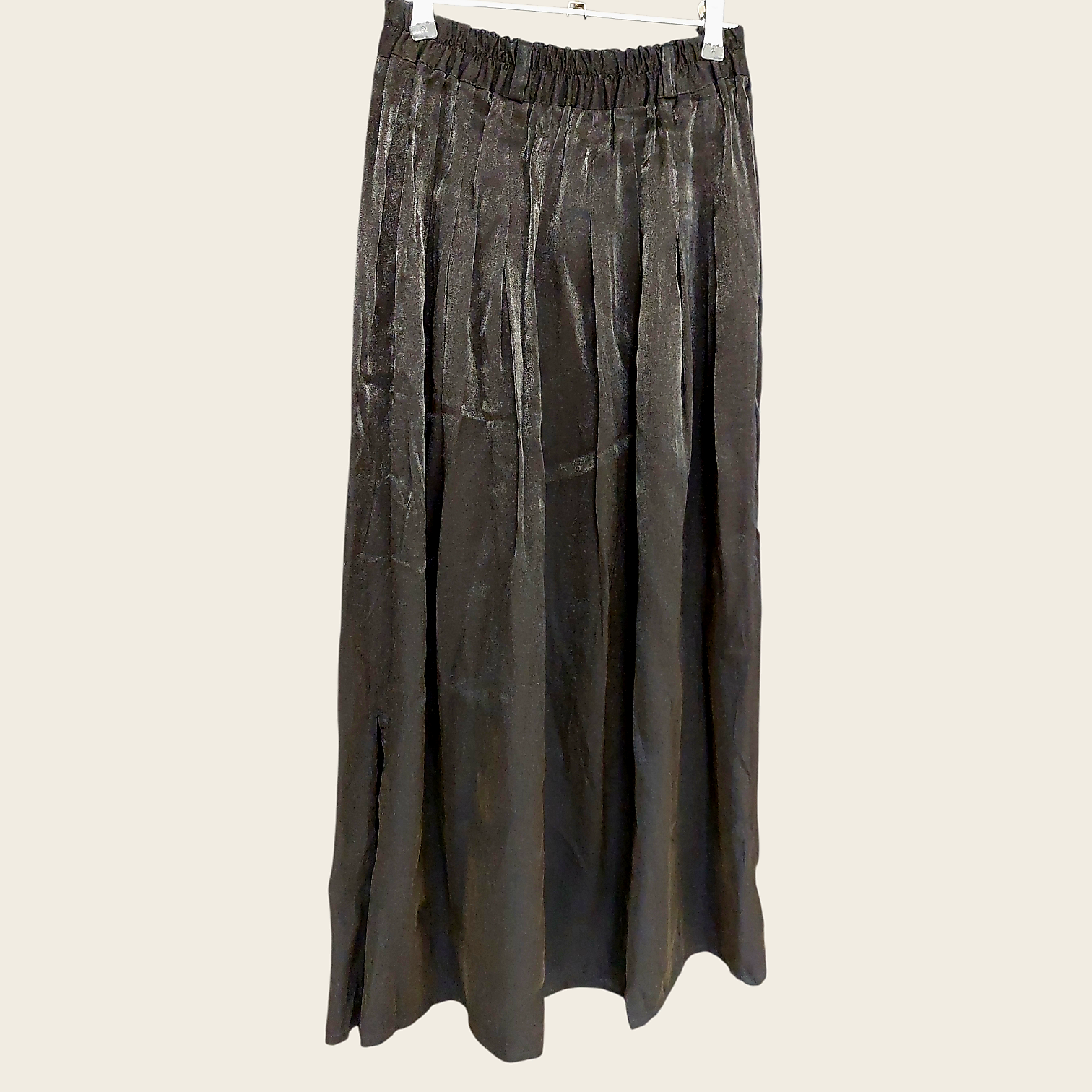 Sand women pitkä hame. Takana kaksi nappia ja vetoketju kiinnitys. Vyölenkit. helmassa molemmissa sivuissa halkiot. koko: 34, pituus 93cm väri: musta hohtava materiaali: 80% viskoosi, 20% polyamidi
