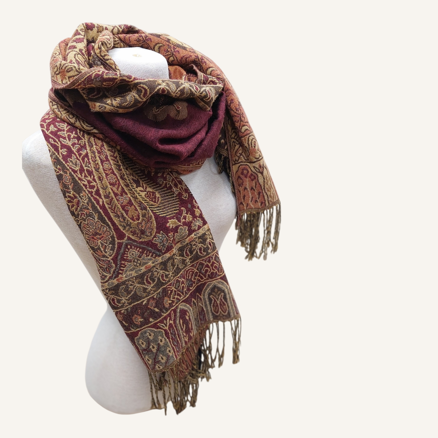 väri: viininpunainen,beige,ruskea