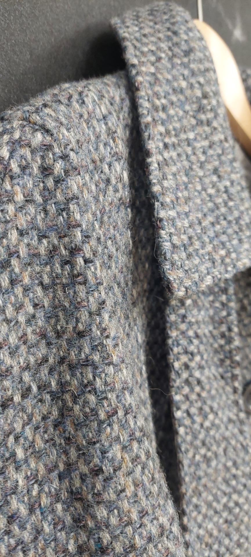 harmaa/sini/beige sävyinen vintage villakangastakki.