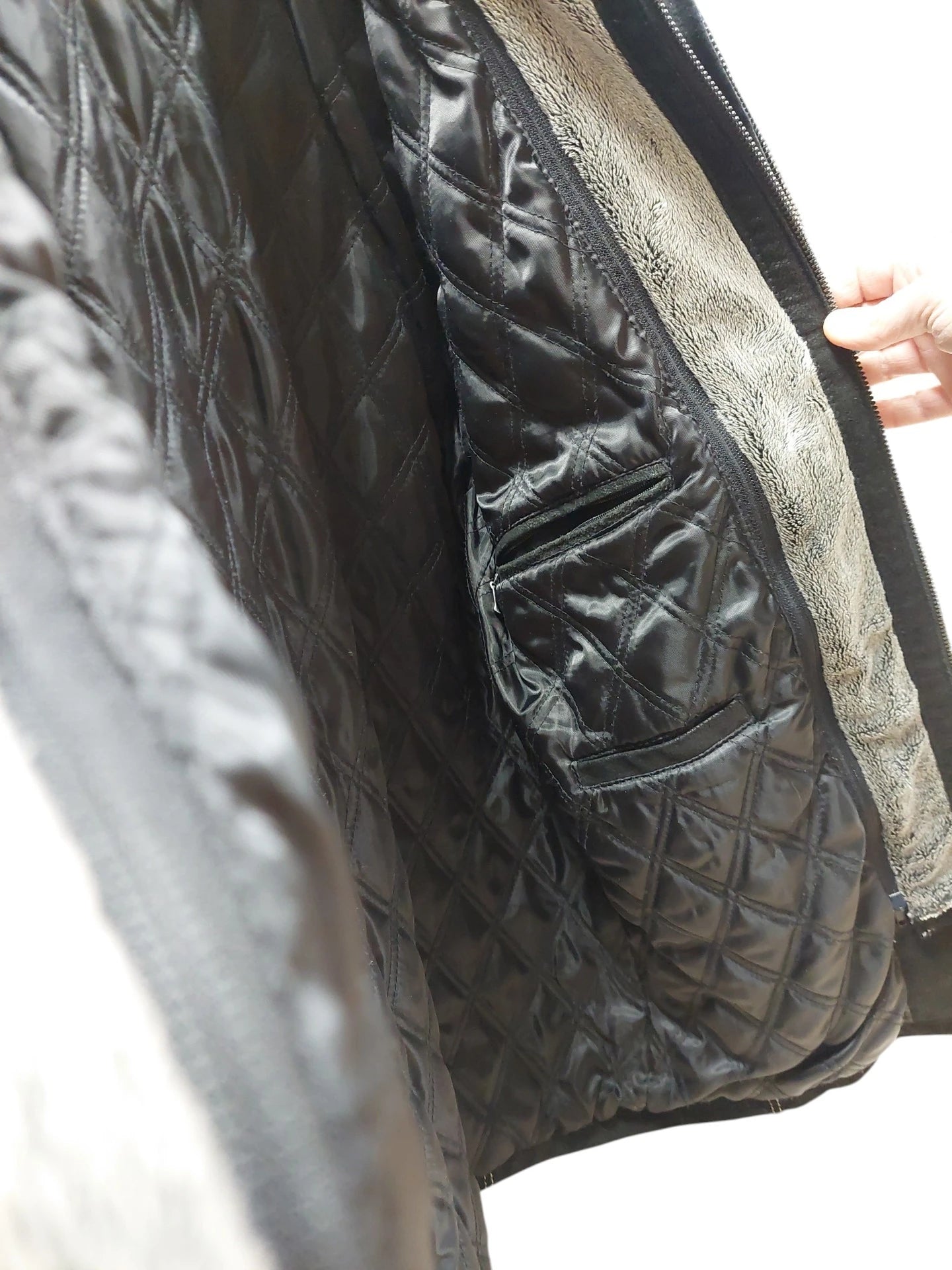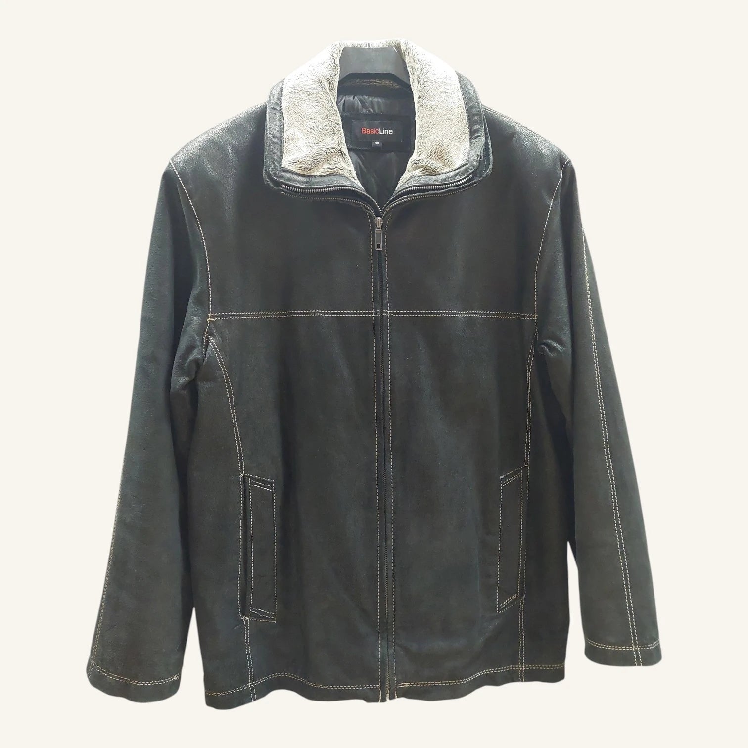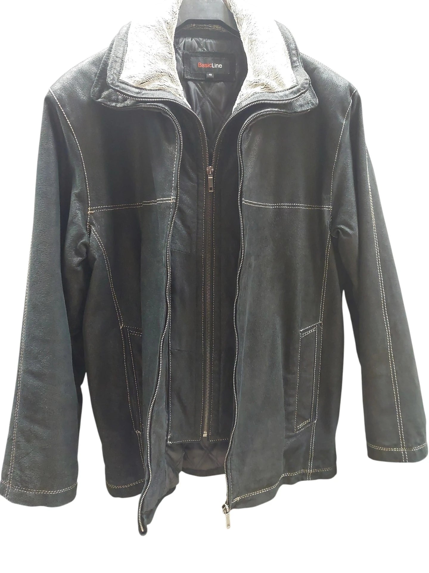 BasicLine Nahkatakki Karvakauluksella - Musta